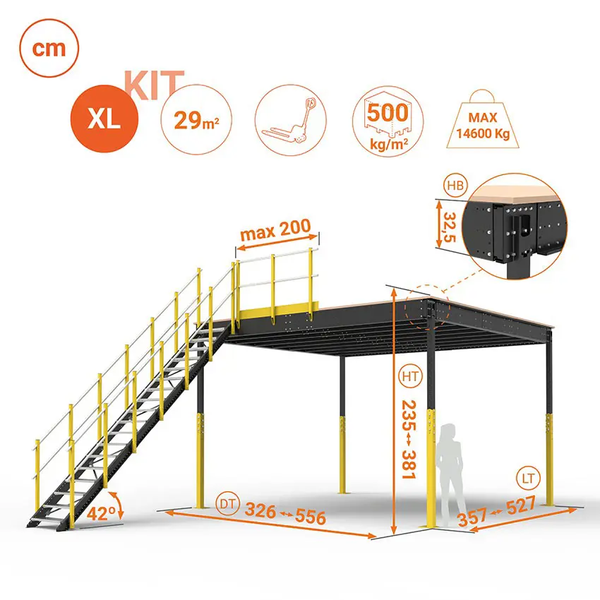 - Ogni lato del soppalco, nel quale si desidera installare la balaustra, necessita di un kit parapetto di partenza con 3 pali.