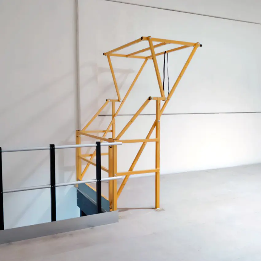 La barriera basculante di sicurezza anticaduta per pallet o carichi è un elemento di sicurezza e protezione collettiva.