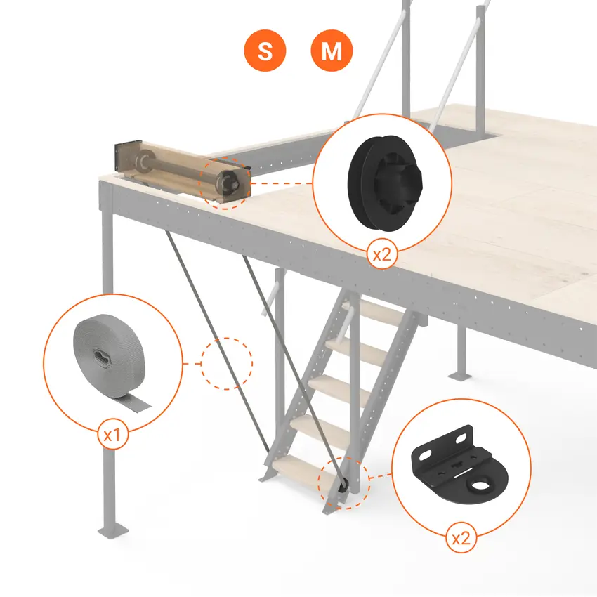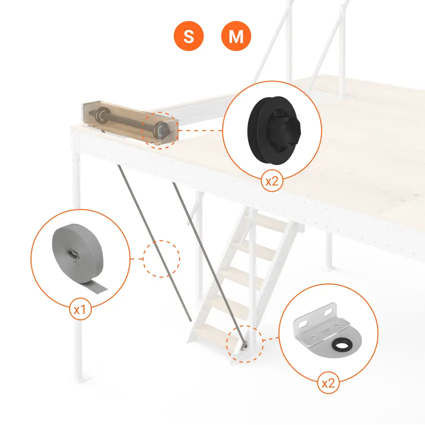 Per una corretta installazione, la scala deve essere installata parallelamente al soppalco o alla struttura su cui verrà montato il kit.