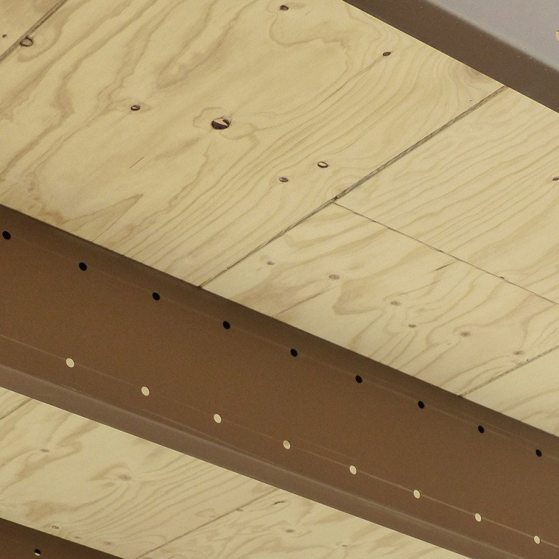 Pavimento in pannelli di legno di pino multistrato idrofugo con spessore mm 18 “maschiati” sui 4 lati.
