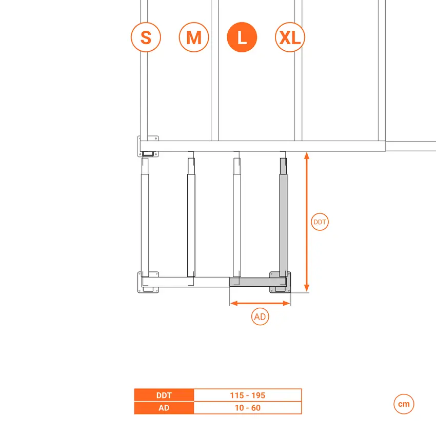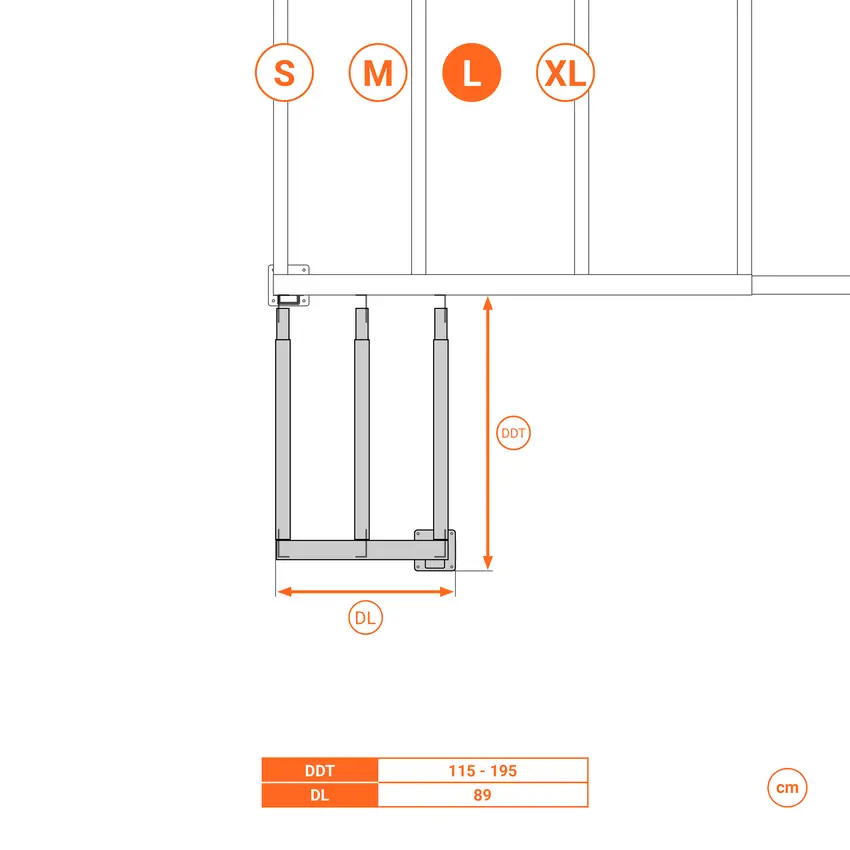 Le scale sono regolabili in altezza, quindi sono compatibili con qualsiasi soppalco Svelt e altre superfici, a condizione che l'altezza di salita corrisponda a quella del soppalco a cui devono essere ancorate.