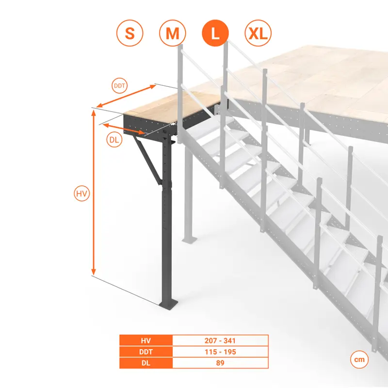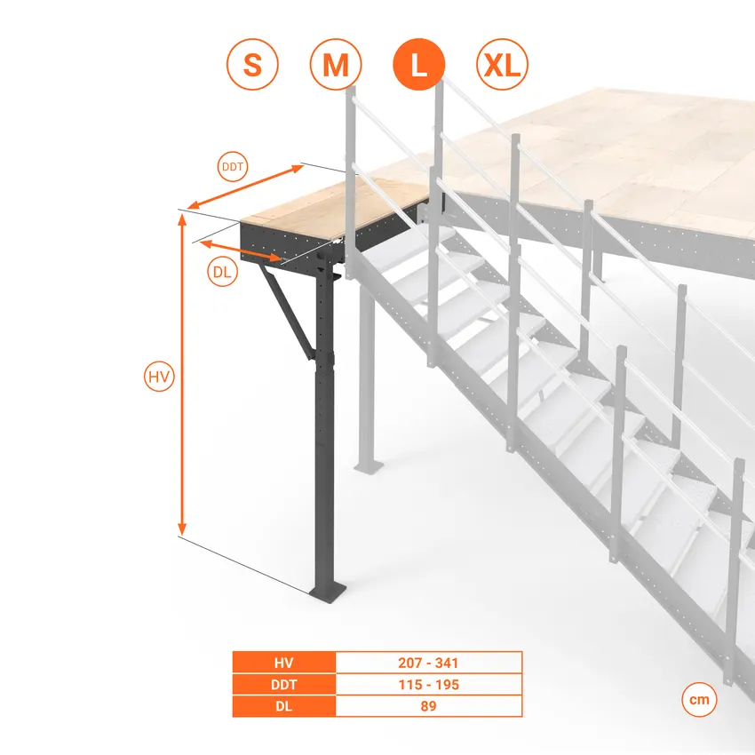 Kit pianerottolo di sbarco L per installare una scala esterna sul soppalco. Adatto ai soppalchi Large.