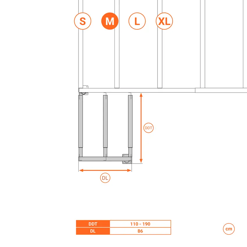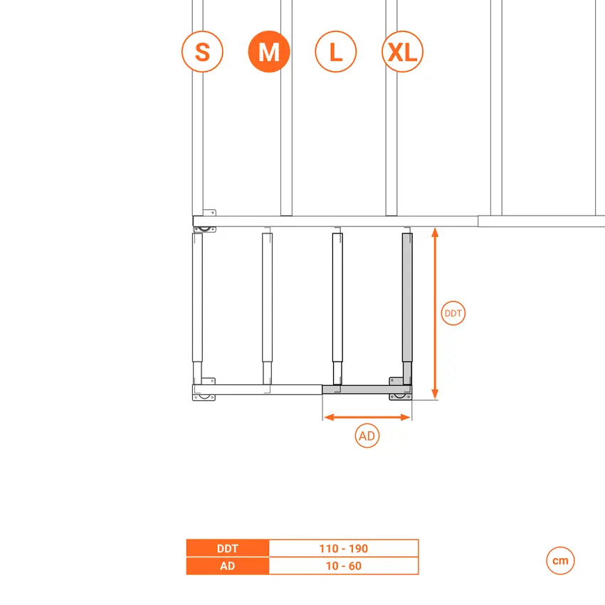 Le scale sono regolabili in altezza, quindi sono compatibili con qualsiasi soppalco Svelt e altre superfici, a condizione che l'altezza di salita corrisponda a quella del soppalco a cui devono essere ancorate.