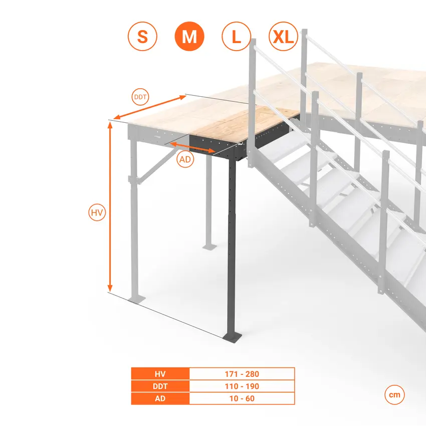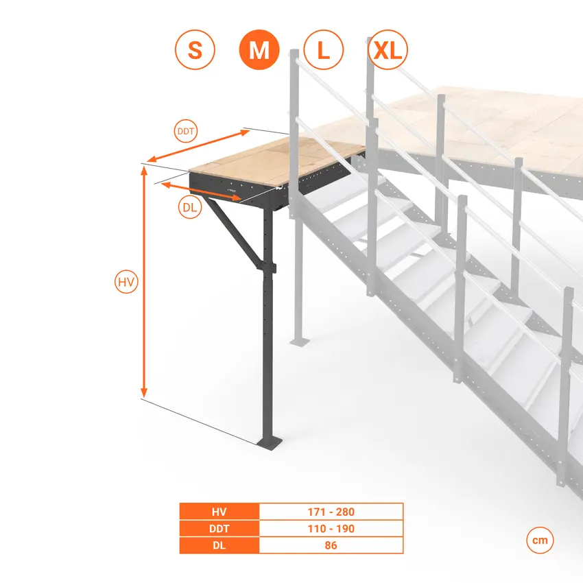Kit pianerottolo di sbarco M per installare una scala esterna sul soppalco. Adatto ai soppalchi Medium