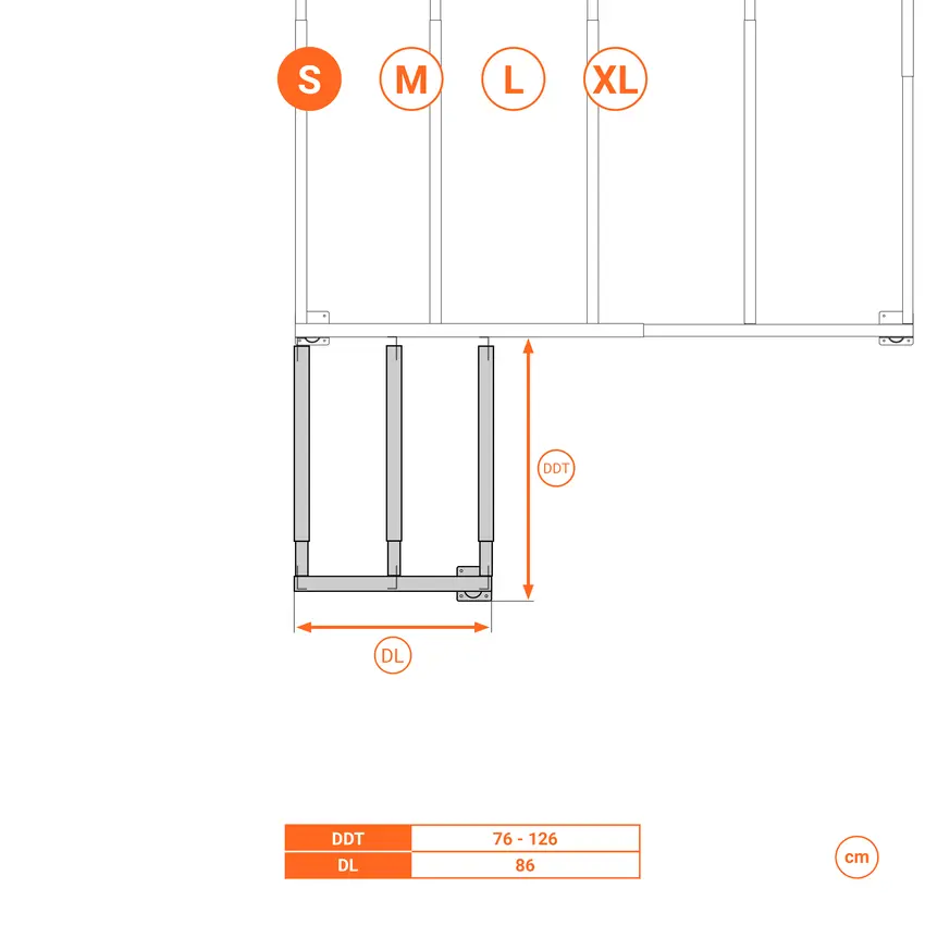 Le scale sono regolabili in altezza, quindi sono compatibili con qualsiasi soppalco Svelt e altre superfici, a condizione che l'altezza di salita corrisponda a quella del soppalco a cui devono essere ancorate.