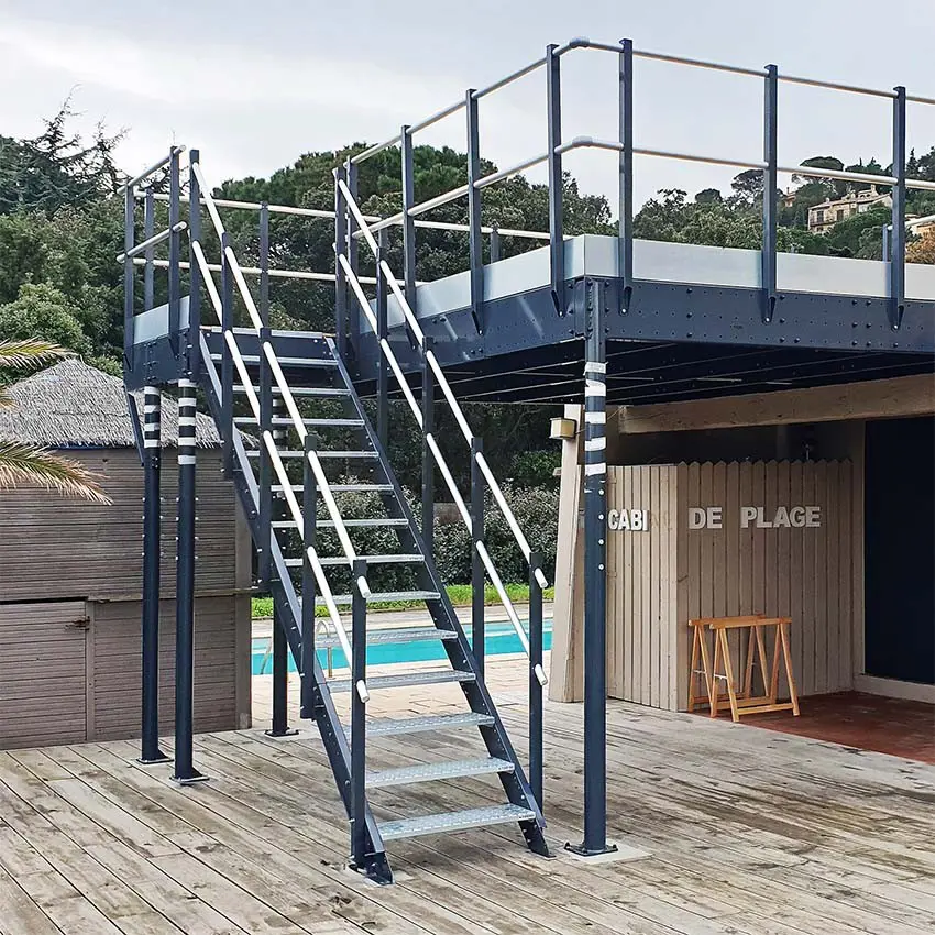 Il pianerottolo è progettato per installare una scala esterna su un soppalco in modo sicuro e confortevole.