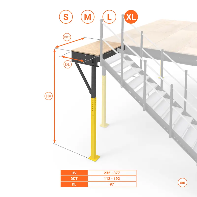 Kit pianerottolo di sbarco XL per installare una scala esterna sul soppalco. Adatto ai soppalchi Extra Large