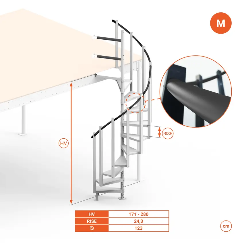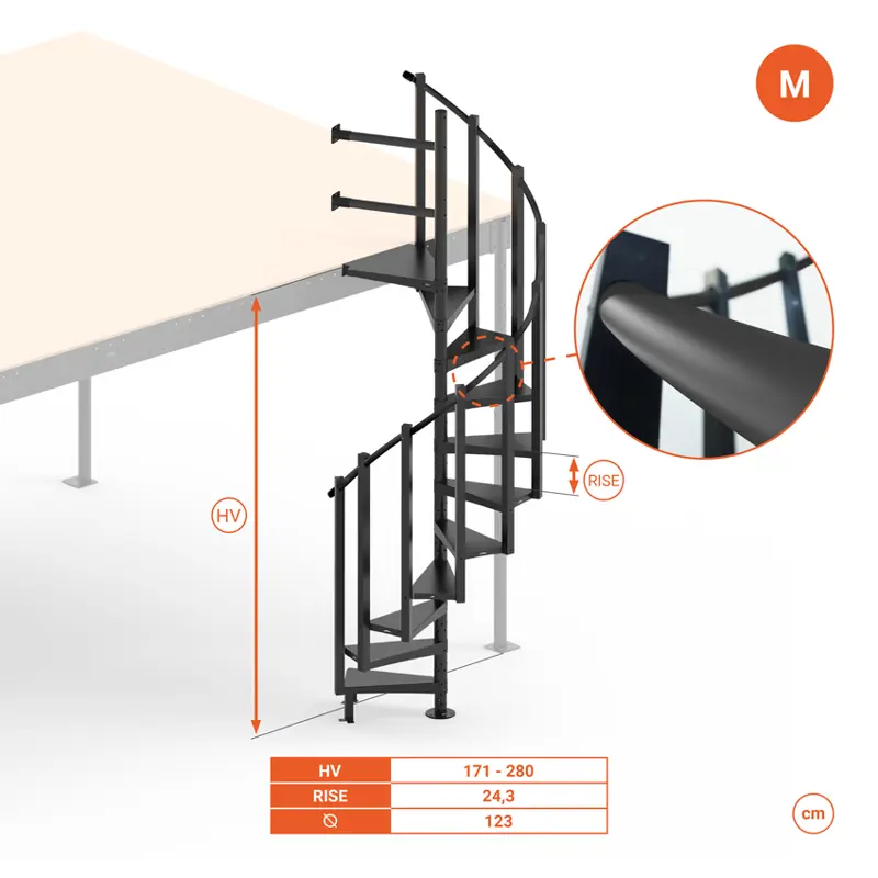 Creata in acciaio verniciato per essere agevolmente montata dall’utilizzatore può essere utilizzata in abitazioni o soppalchi ad uso domestico.