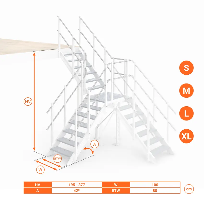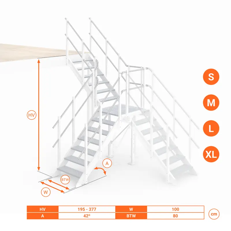 Inoltre, il pianerottolo intermedio offre un punto d'appoggio stabile che riduce il rischio di caduta e facilita la salita.