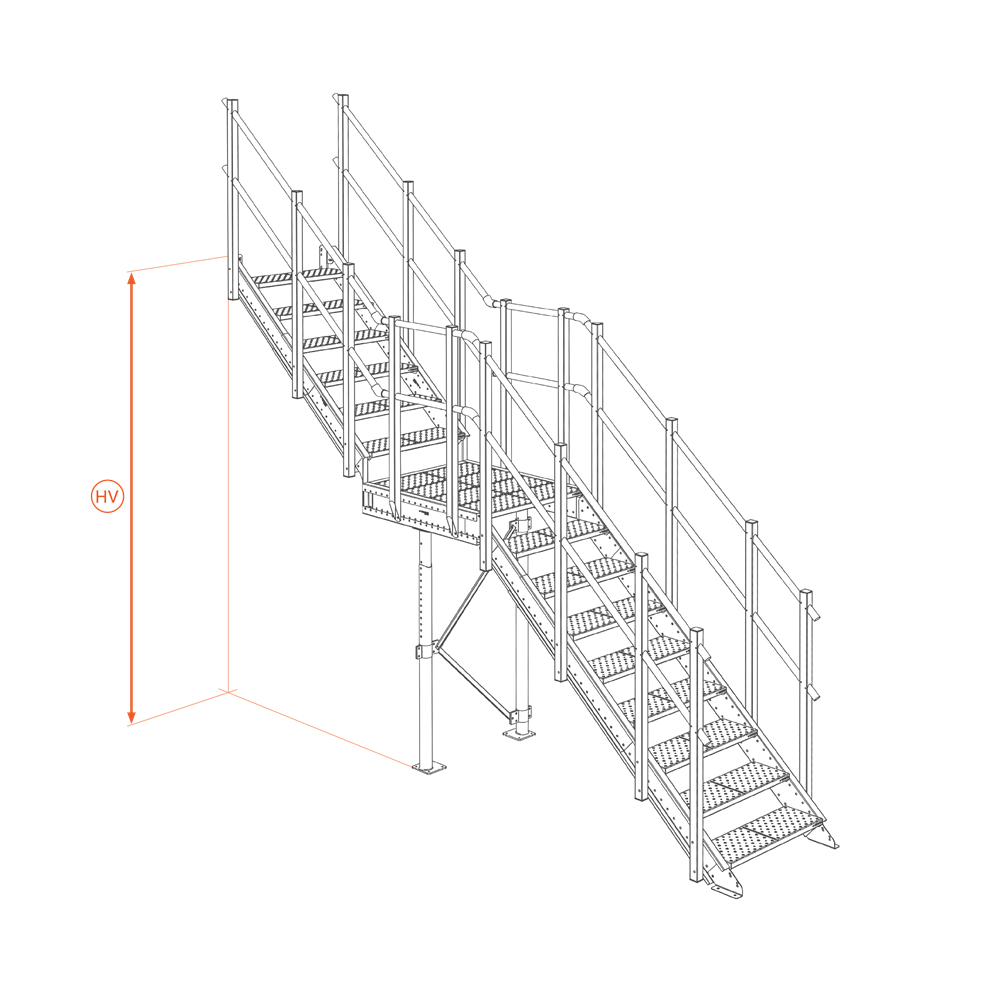 La scala standard include tutti gli elementi necessari per il posizionamento su qualsiasi lato della struttura.