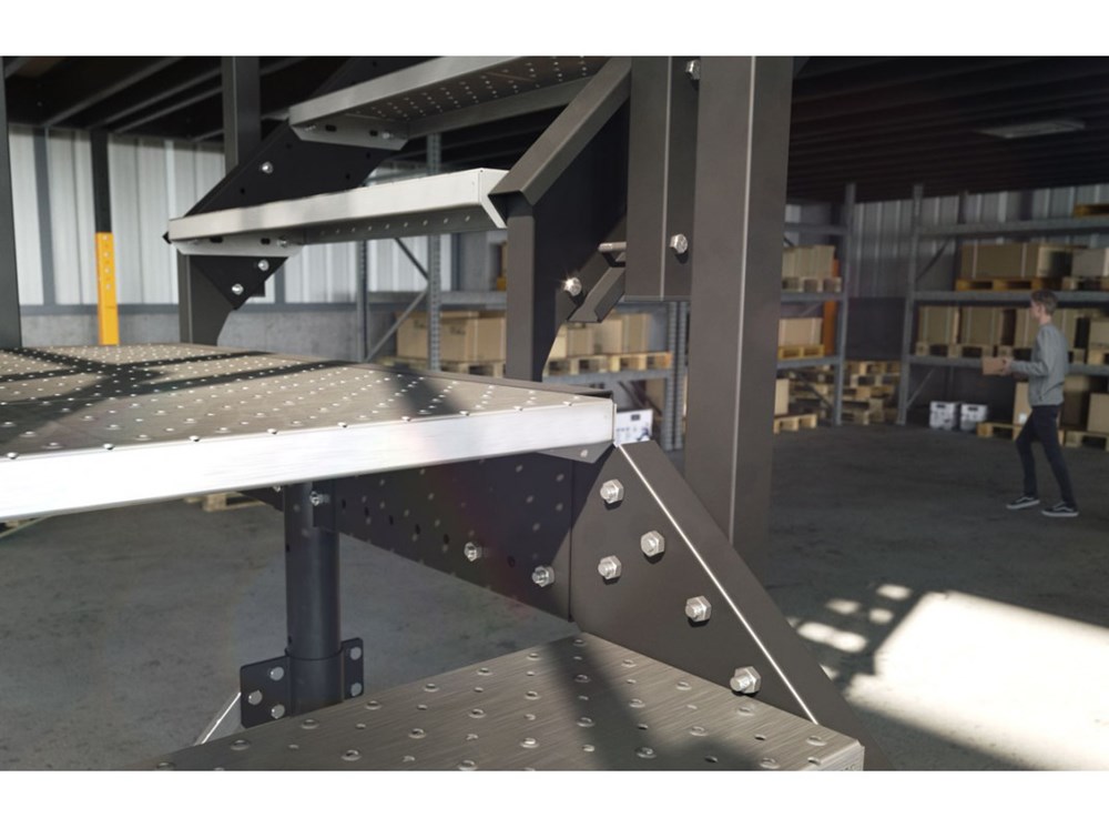 Le travi portanti sono telescopiche e fanno si che possa adeguarsi a qualsiasi altezza del soppalco.