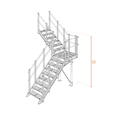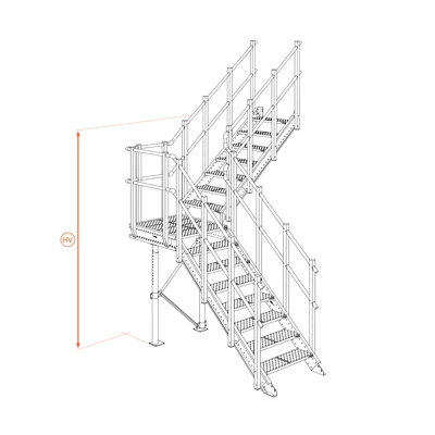 Scala a L e rampe a 90° o dritta. Dotata di pianerottolo. Telescopica e regolabile con inclinazione 42°