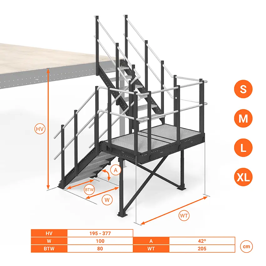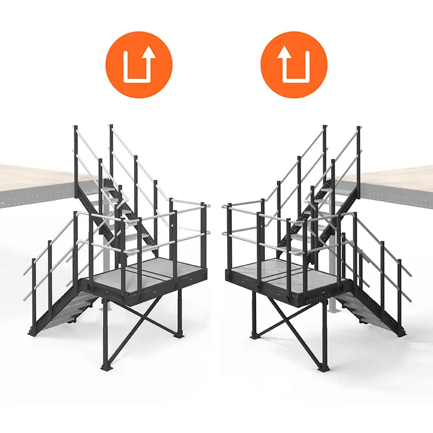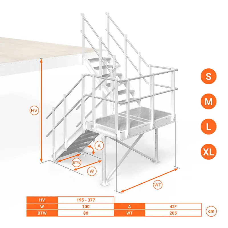 Inoltre, il pianerottolo intermedio offre un punto d'appoggio stabile che riduce il rischio di caduta e facilita la salita.
