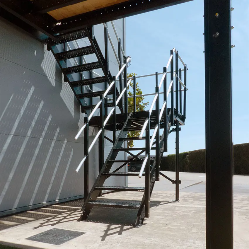 - Materiale dei gradini: Acciaio zincato antiscivolo e evacuativo (con fori interni da 8 mm)