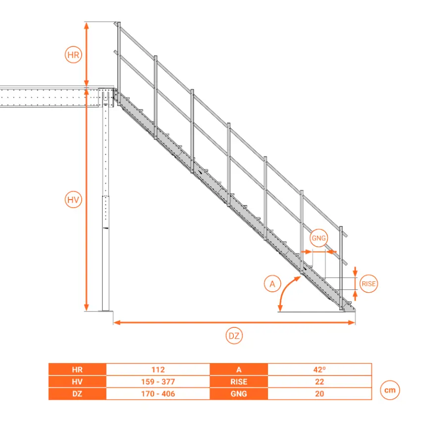 - Altezze disponibili sopra le travi (cm) (HV): 159, 165, 171, 177, 183, 189, 195, 201, 207, 213, 219, 225, 232