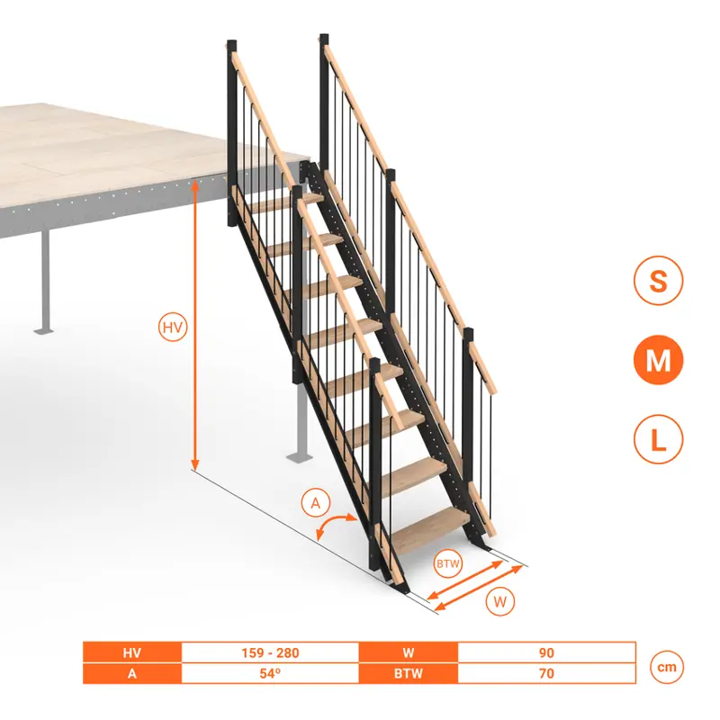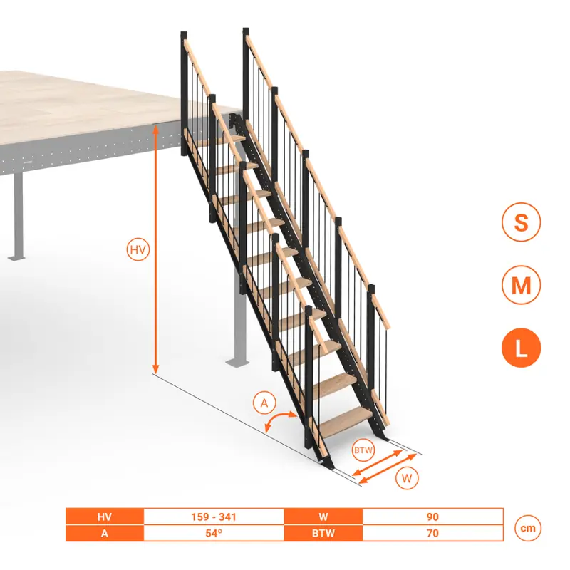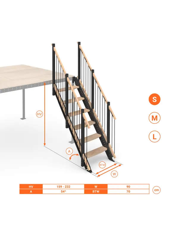 - Inclinazione scala: 54°