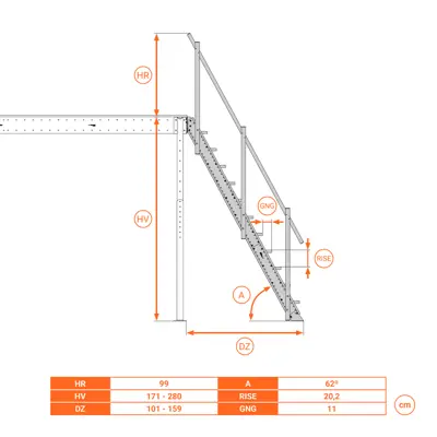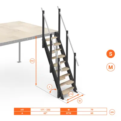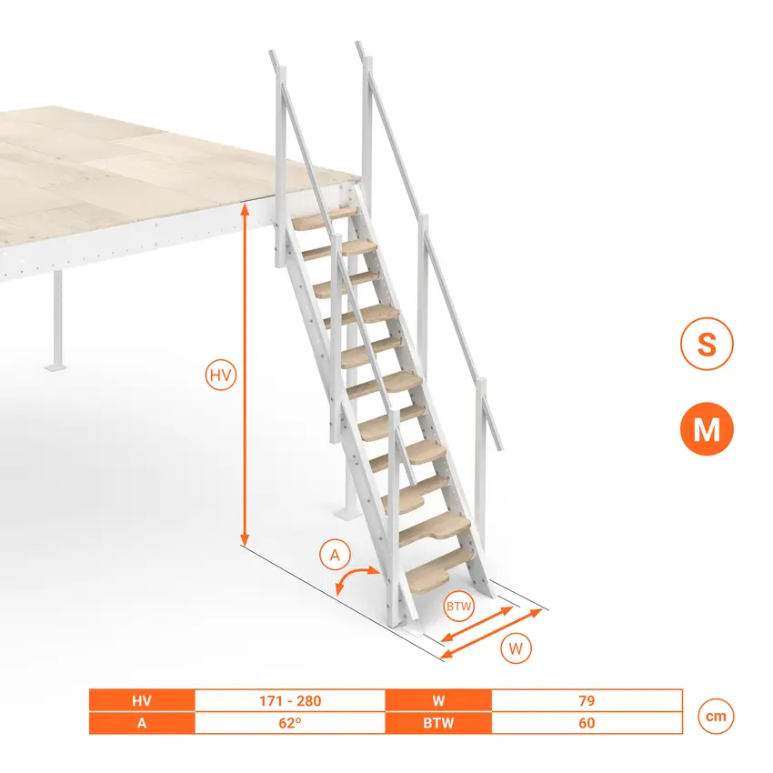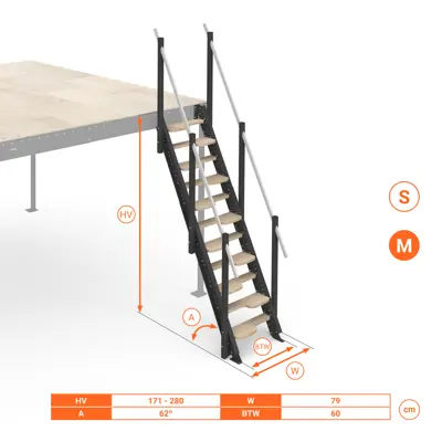 - Inclinazione scala: 62°