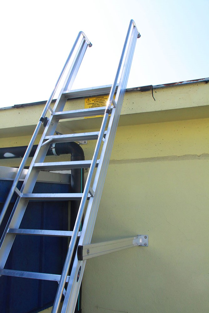 Permette di accedere comodamente a soppalchi, muri, sottotetti e solai. I tamponi d'appoggio superiori e inferiori sono in PVC e conferiscono alla scala grande stabilità.