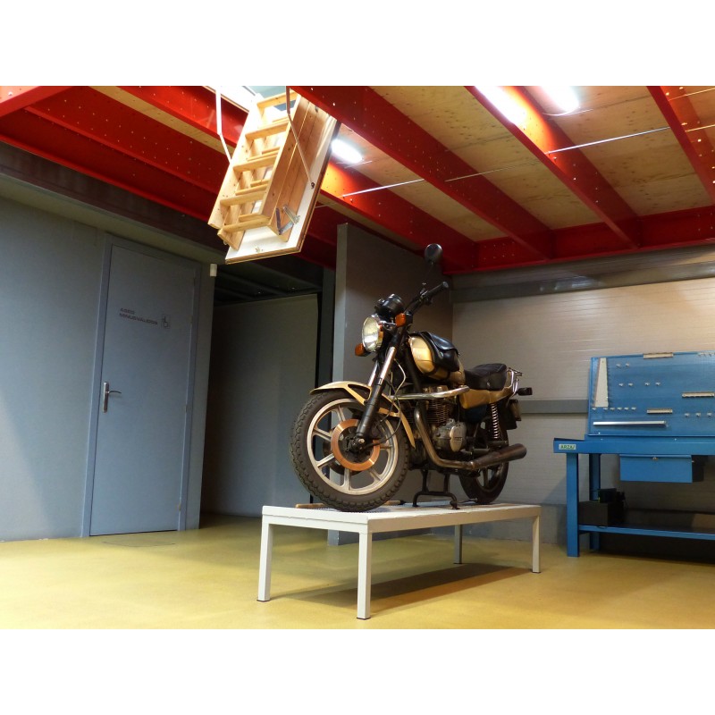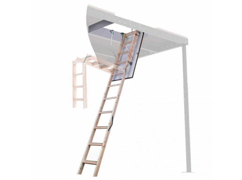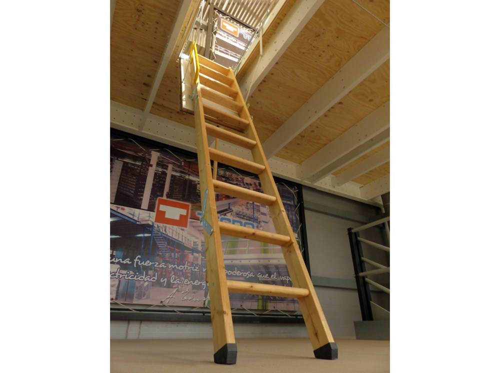 Scala a scomparsa in legno che facilita un comodo e sicuro accesso al lato superiore del soppalco o della struttura in cui si trova.