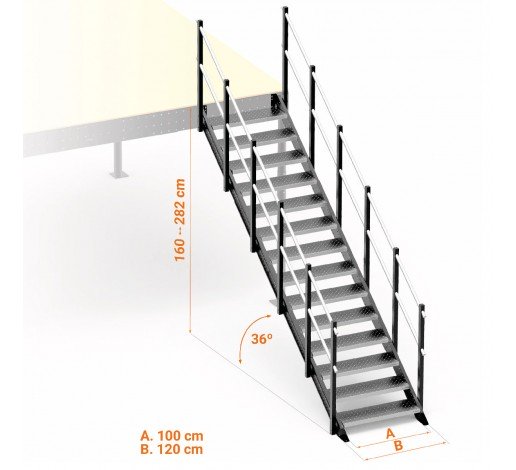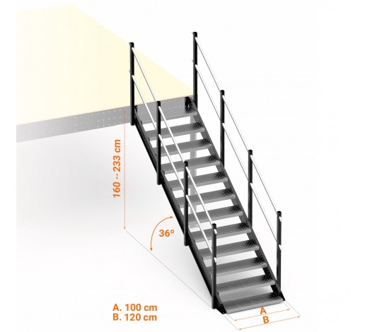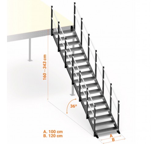 - Scala per soppalchi di tutte le categorie: Altezza regolabile da mm 1600 a mm 3430 (divise sui 3 modelli)