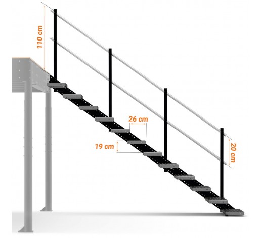 La Scala Comoda Larga per Soppalchi Svelt è regolabile, costuita in acciaio verniciato nero o bianco.