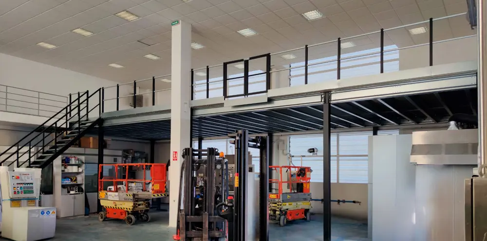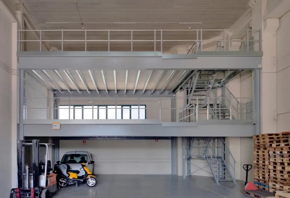 Livelli aggiuntivi che facilitano l'organizzazione di attrezzature e materiali, separano le aree di lavoro, migliorano l'efficienza e mantengono un flusso di lavoro ordinato, adattandosi a qualsiasi ambiente industriale.