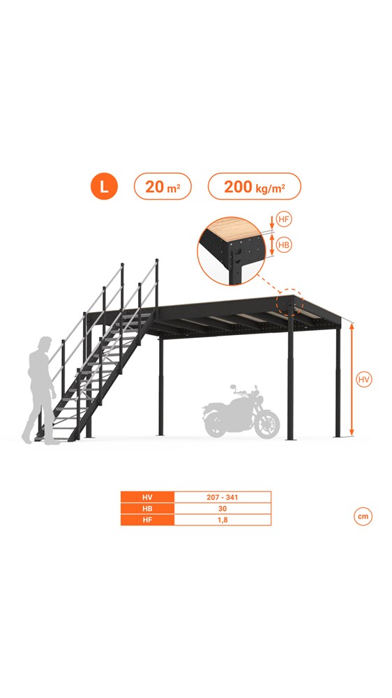 | DESTINAZIONE DI UTILIZZO CON BALAUSTRA DA 100 CM | Soppalco calpestabile |
