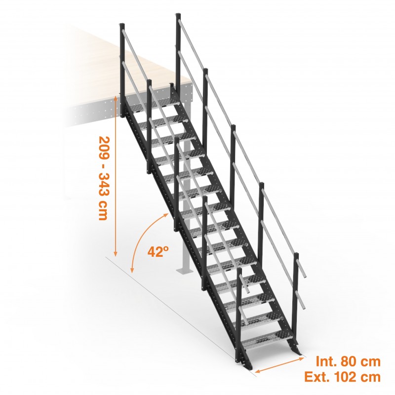 MODELLO DI SCALA INCLUSA NEL KIT: Scala comoda L con gradini in ferro 42°