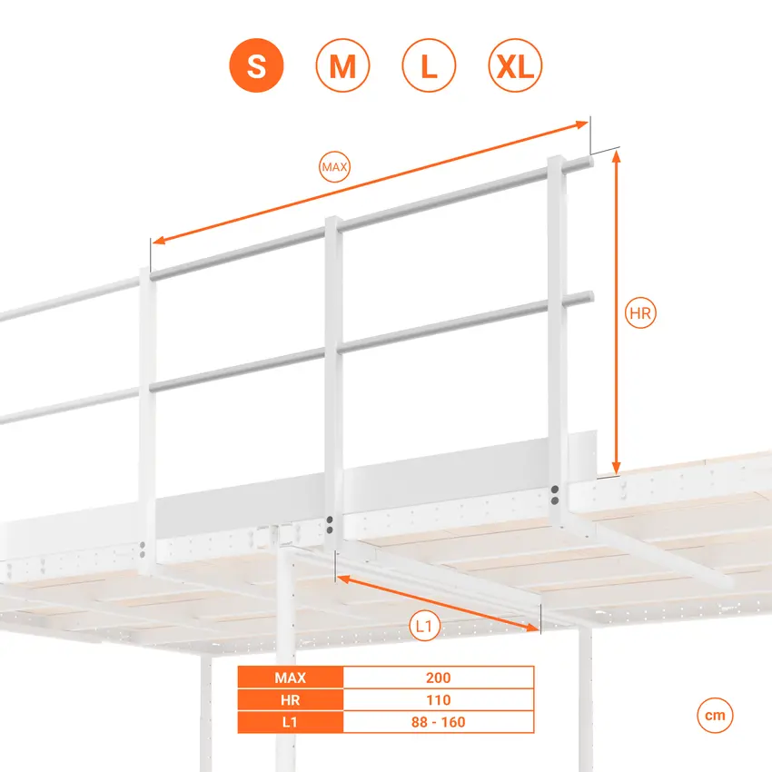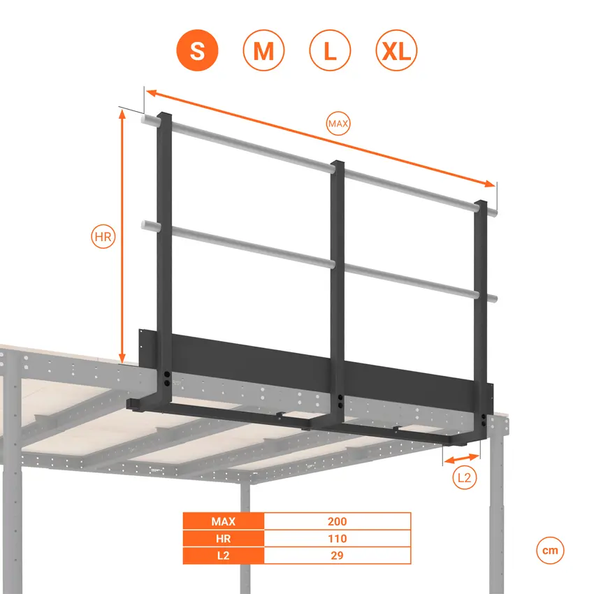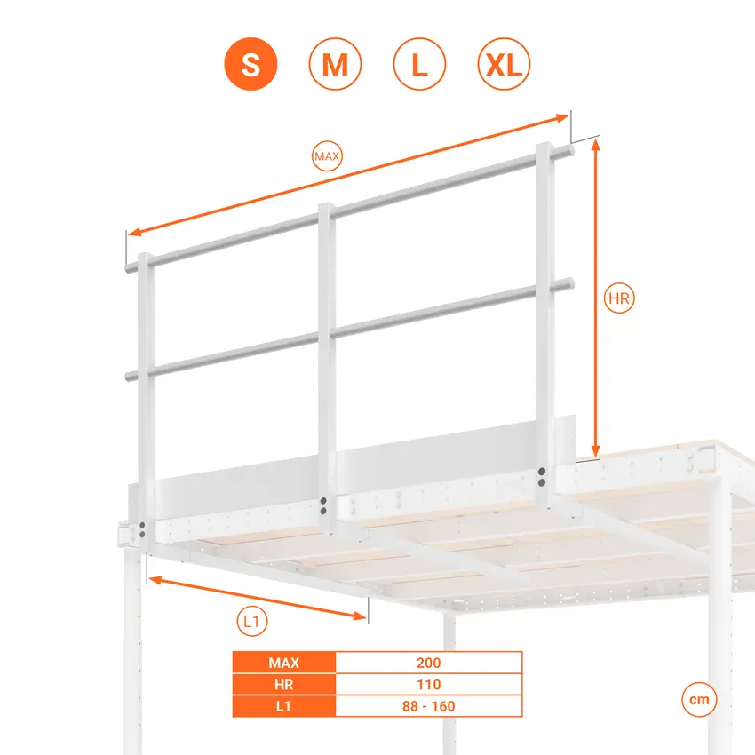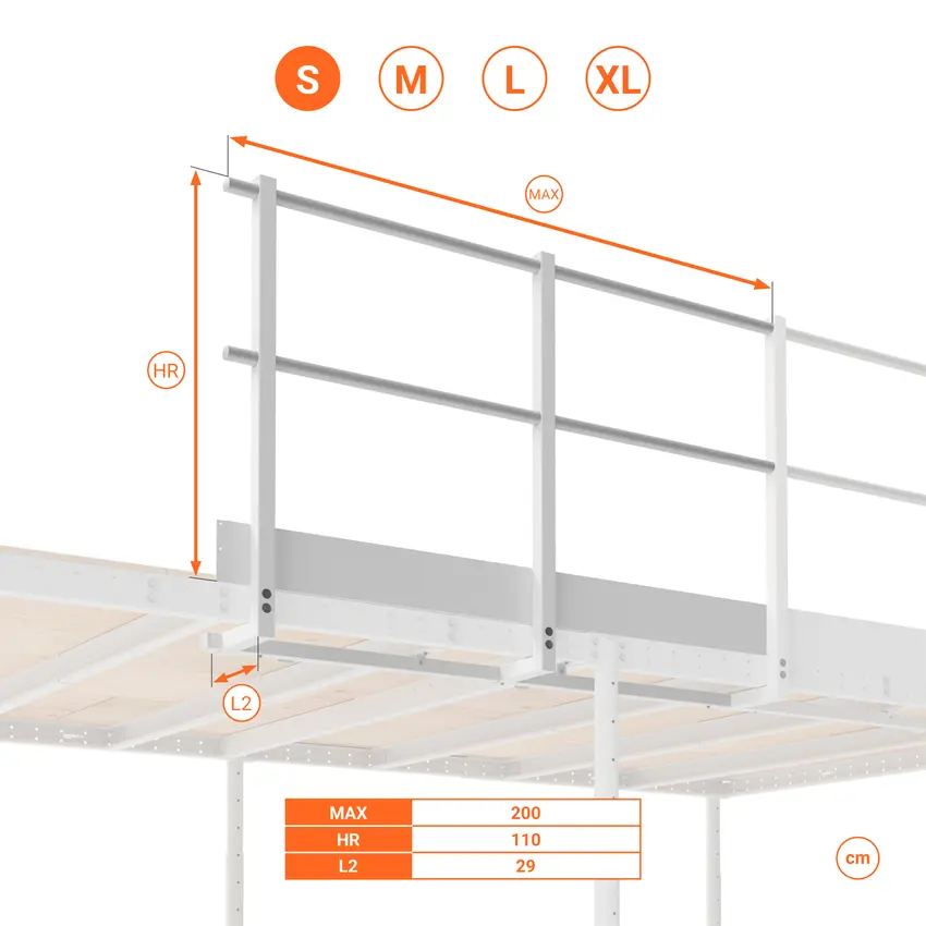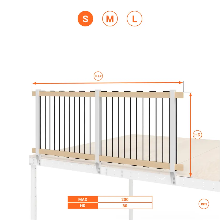 Kit balaustra standard altezza 80 cm per utilizzo come soppalco basso
