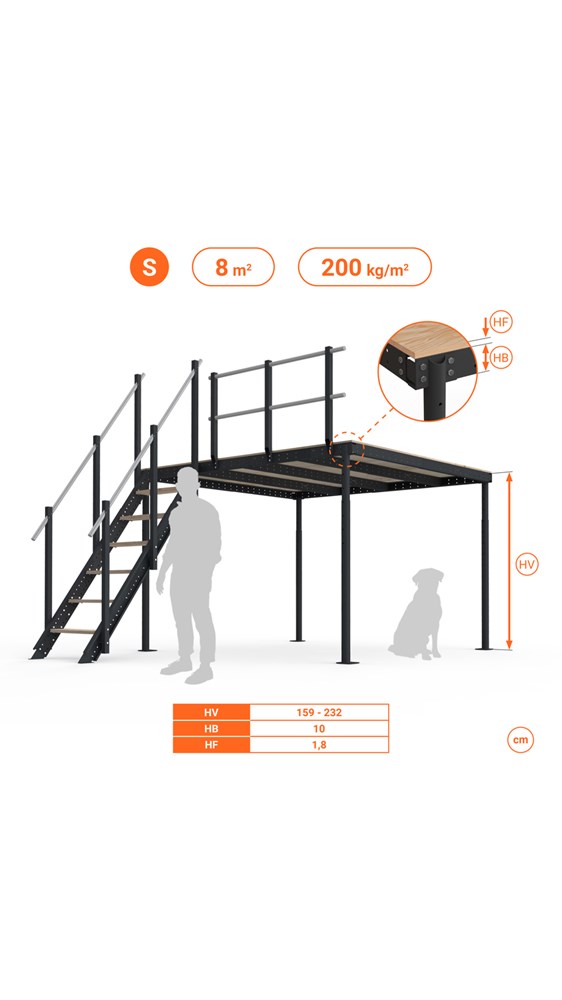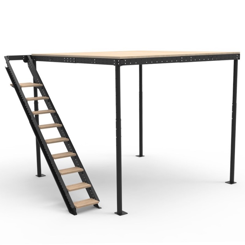 - Kit balaustra su richiesta a 4 tubi altezza 80 cm per utilizzo come soppalco basso (es. ripostiglio per il garage) o soppalco d'arredo (es. per il letto)
