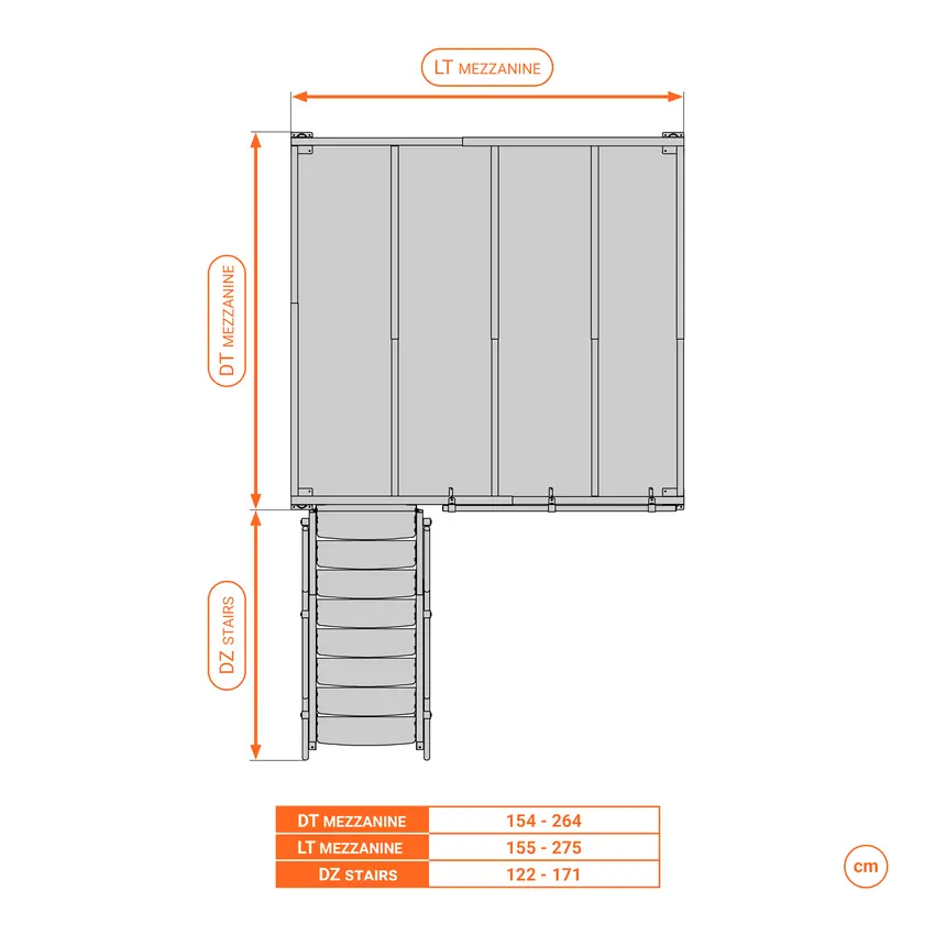 | DESTINAZIONE DI UTILIZZO CON BALAUSTRA DA 100 CM | Soppalco calpestabile |
