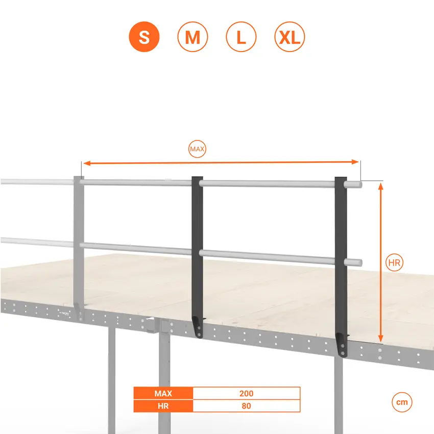 Kit balaustra standard altezza 80 cm per utilizzo come soppalco basso