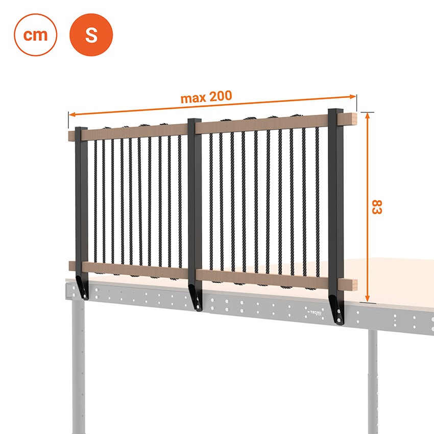 Kit balaustra in corda con altezza 83 cm lunghezza m 2 per utilizzo come soppalco basso (es. ripostiglio per il garage) o soppalco d'arredo (es. per il letto)