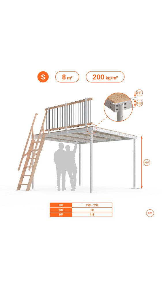 - Kit balaustra standard altezza 80 cm per utilizzo come soppalco basso (es. ripostiglio per il garage) o soppalco d'arredo (es. per il letto)
