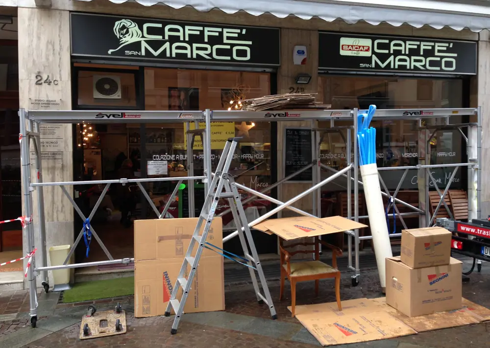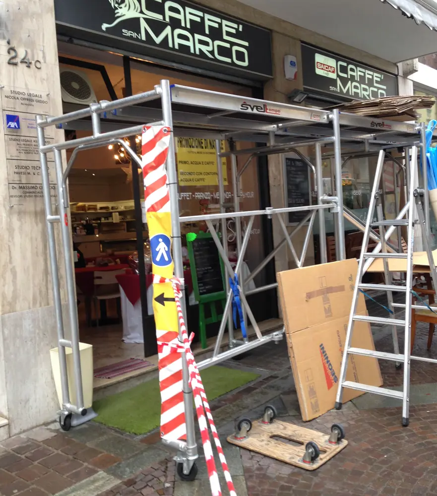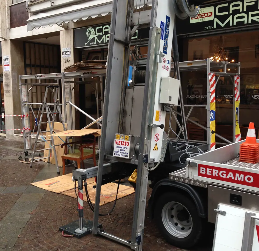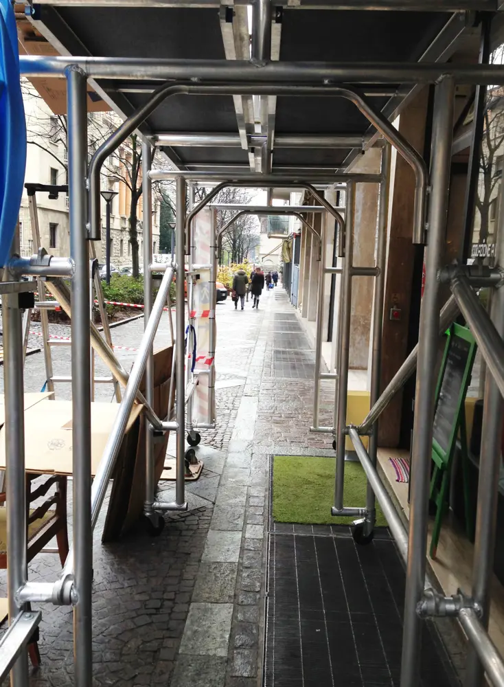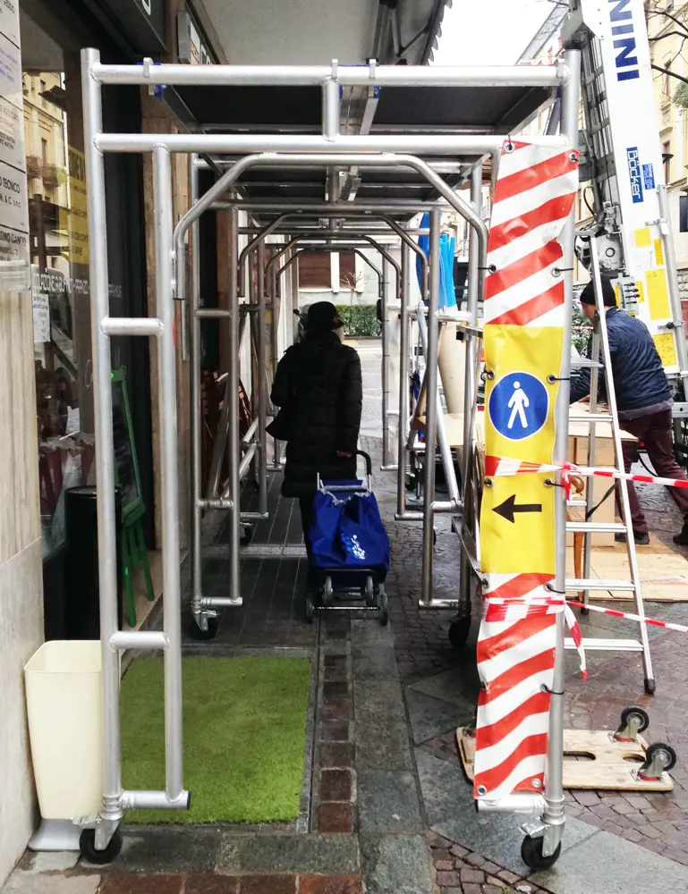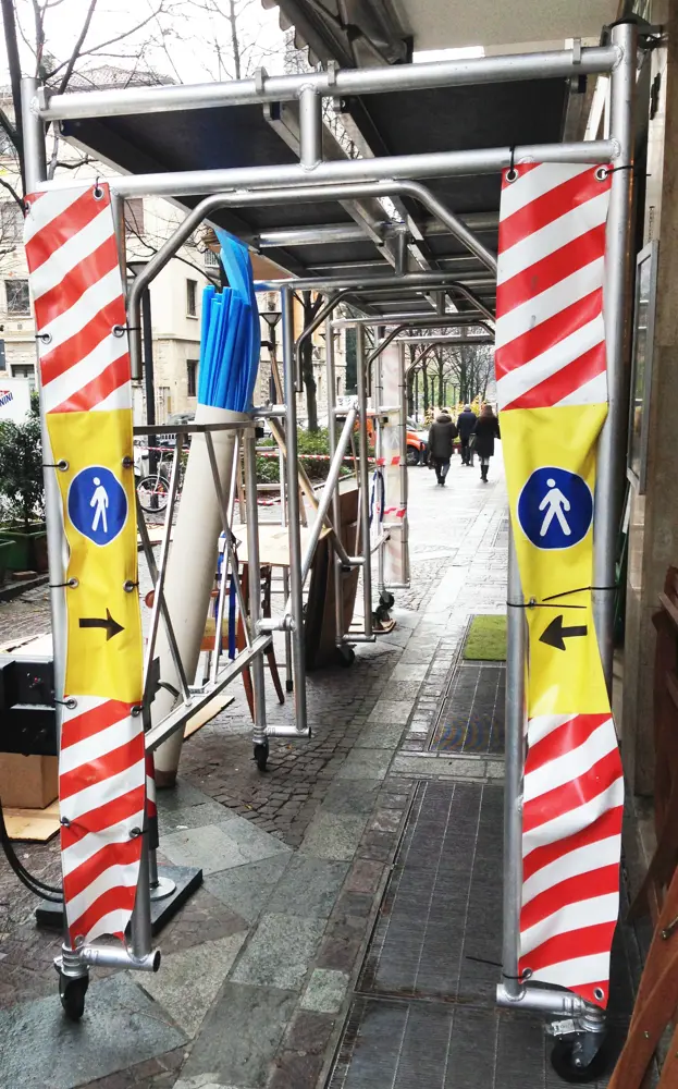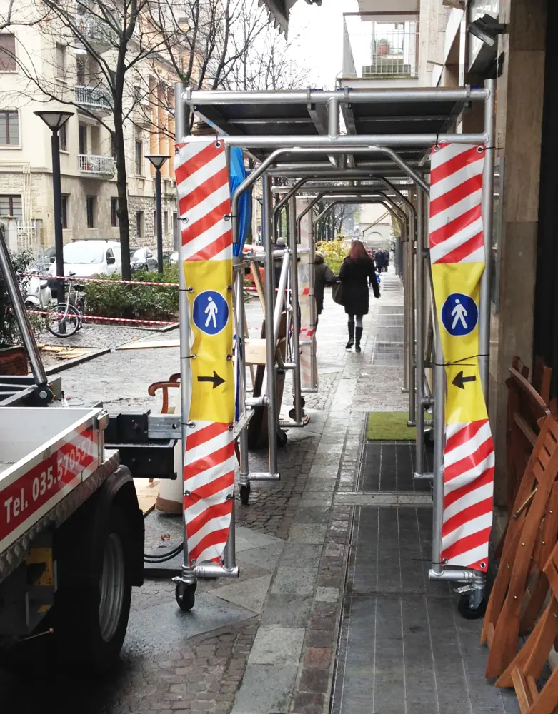Sistema di protezione e di passaggio in zone con pericolo di caduta oggetti (traslochi)
