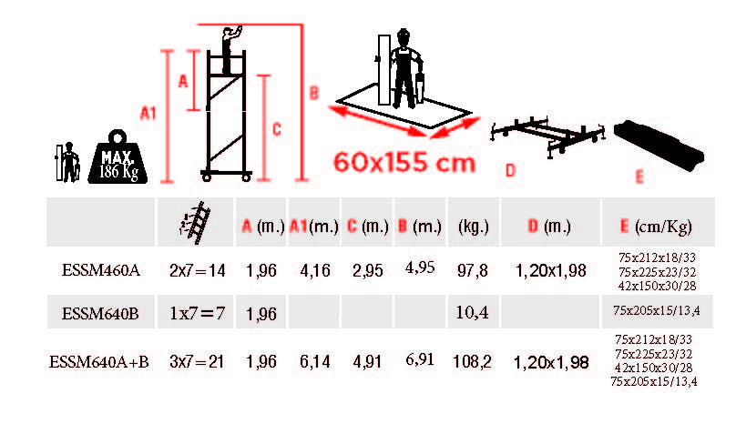 Per rendere più comodo il lavoro sul trabattello da m 6,14.