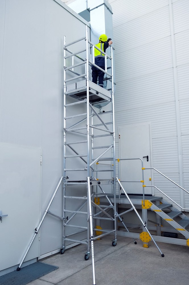 La sua caratteristica è di essere così compatto che un solo operatore è in grado di montarlo in sicurezza in meno di 10 min. senza dover scendere a terra durante il montaggio.