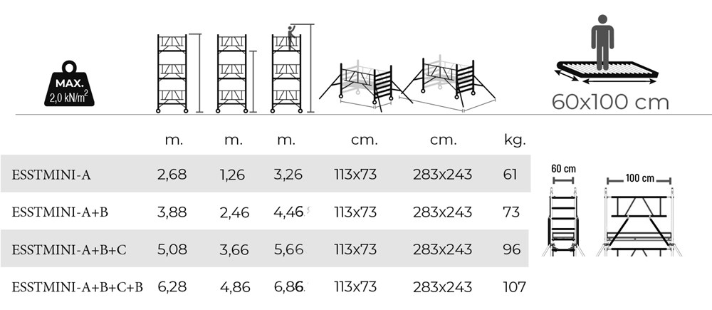 Trabattello professionale ultracompatto a montaggio rapido da parte di 1 solo operatore. Norme europee UNIEN1004-1-2