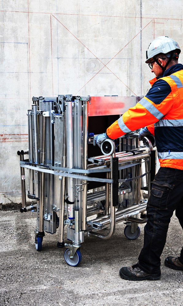 L’operatore apre e solleva il trabattello in 3 minuti fino all'altezza desiderata.