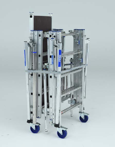 Trabattello professionale telescopico in alluminio ad apertura rapida. Norme italiane D.LGS.81/08