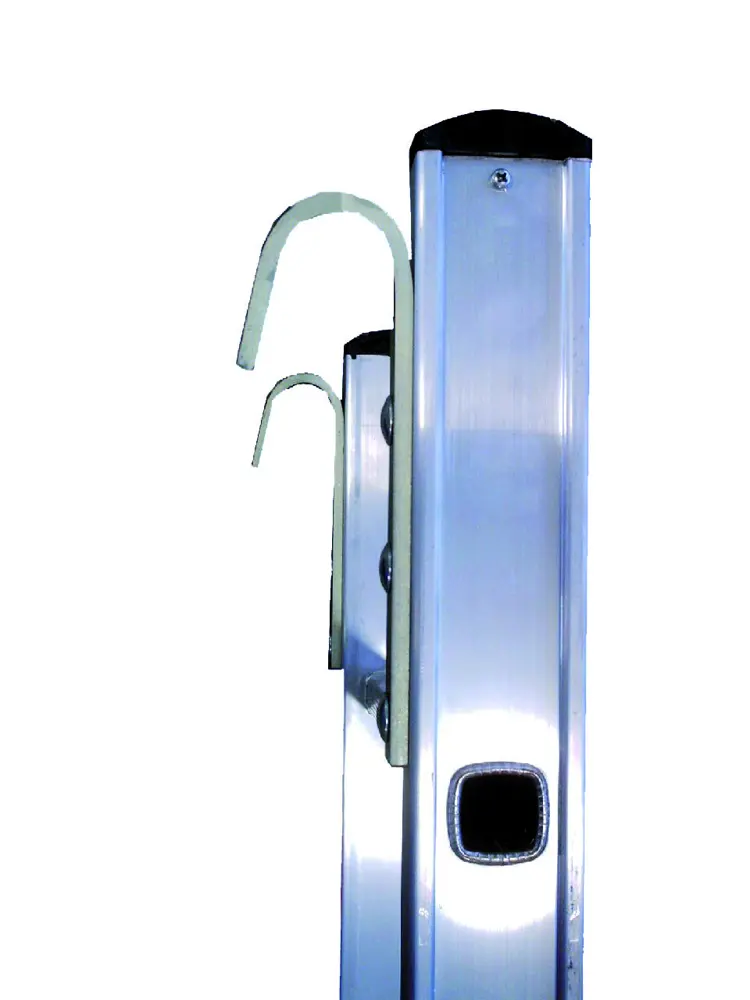 Het is voldoende om een gat in het profiel te boren wat overeenkomt met de diameter van de gaten van de haken, en de gebruiker heeft een trap die hij aan kan sluiten op een buis of op een andere manier verbinden met de muur.