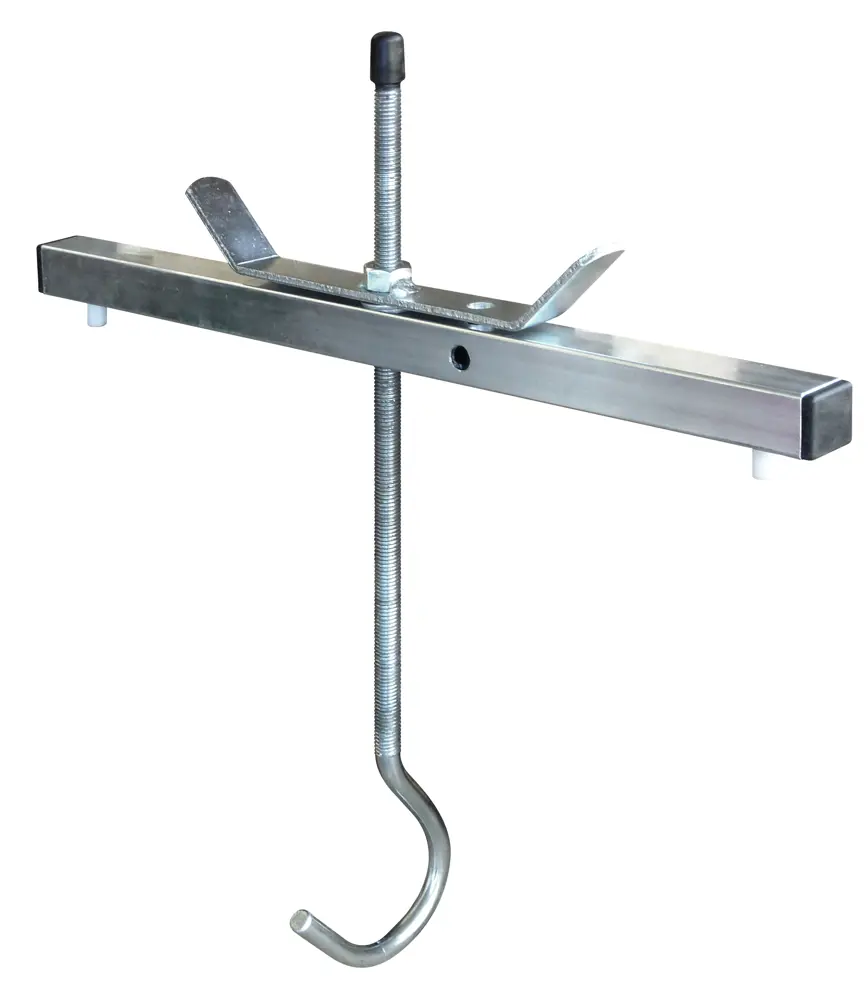 Universele haak die de ladder op het bagagerek vergrendelt. Voorzien van een lus met hangslot.