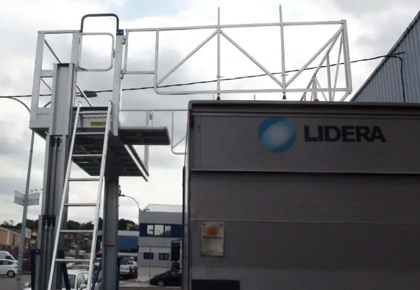 Telescopische geleiders maken het mogelijk het platform aan te passen aan de vorm van het voertuig, zodat er geen vrije ruimte overblijft waarin de operator kan vallen.