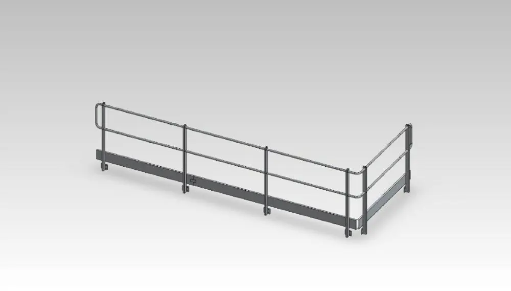 Aluminium balustrade die kan worden verdronken in beton, of aan het dak kan worden geschroefd of gelast zodat deze niet gemakkelijk kan worden verwijderd.