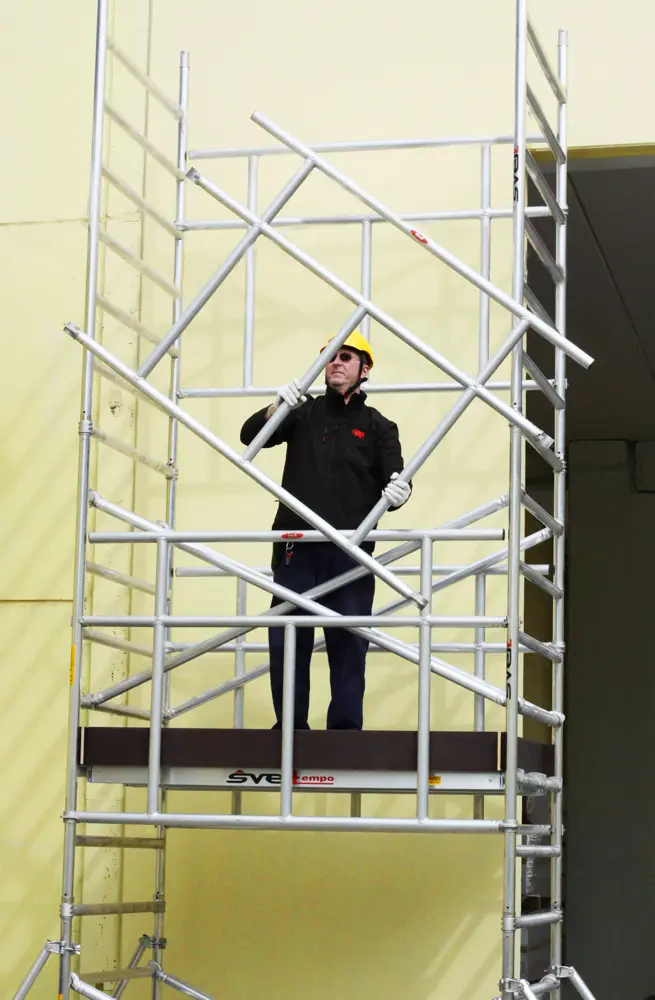 Tijdens de montage is men ten allen tijde volledig rondom beschermd. Hierdoor is mogelijk om de steiger met 1 persoon op te bouwen zonder dat men aanvullende veiligheidmaatregelen moet treffen.