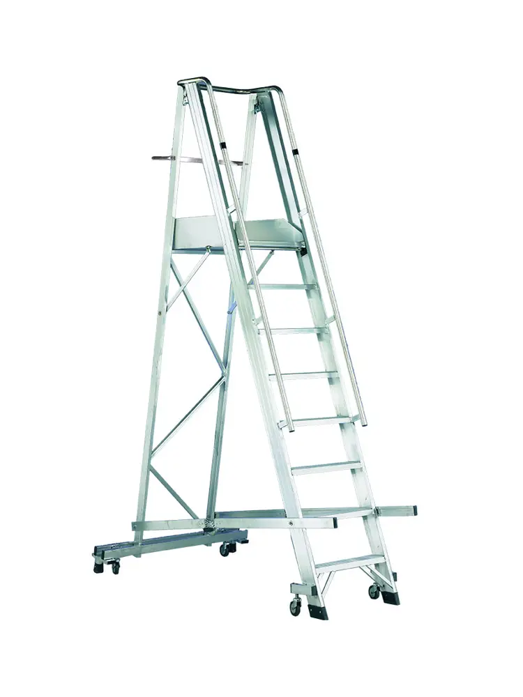 Zeer intensief gebruik, 4 zelfremmende wielen, brede treden, extra groot platform