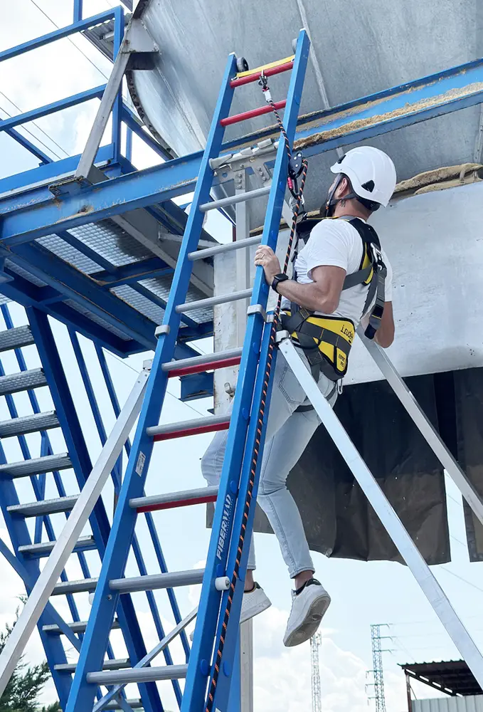 Het is gemaakt van glasvezel en is een antimagnetische ladder die bestand is tegen vocht, zuren, corrosie en ultraviolette stralen.