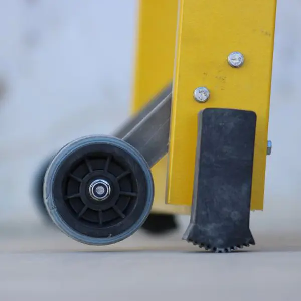 Twee wielen met een diameter van 125 mm maken het mogelijk om de ladder te verplaatsen door te duwen.