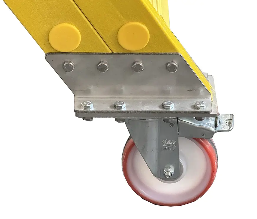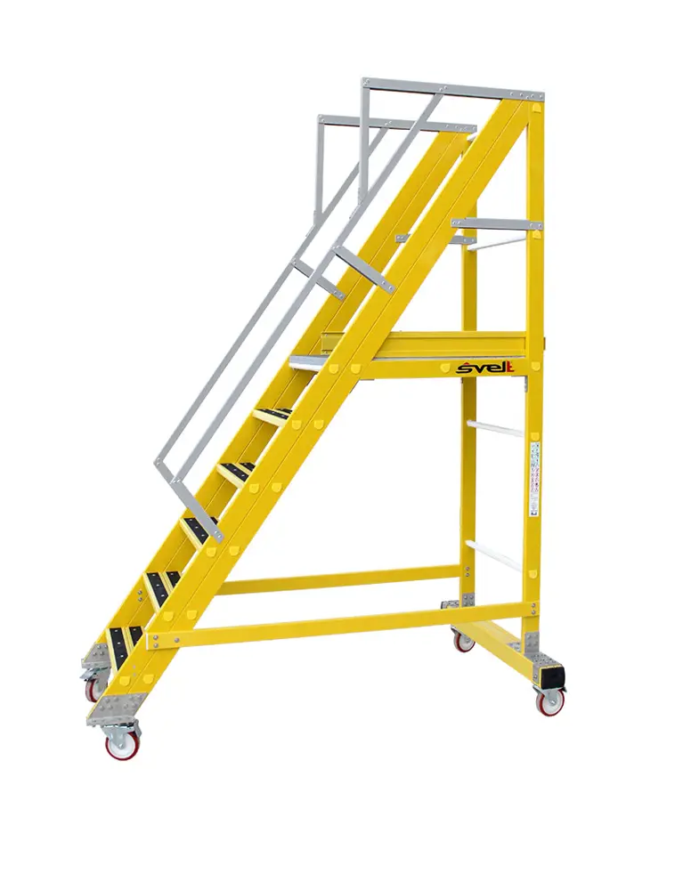 Glasvezel ladder met brede oprijplaat, 60x80 cm platform, 4 wielen met rem voor voedings- of chemische bedrijven