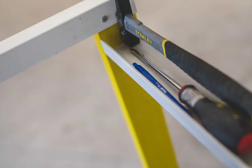 - Professionele verplaatsbare ladder met platform gemaakt in overeenstemming met de Italiaanse norm D.LGS.81/2008